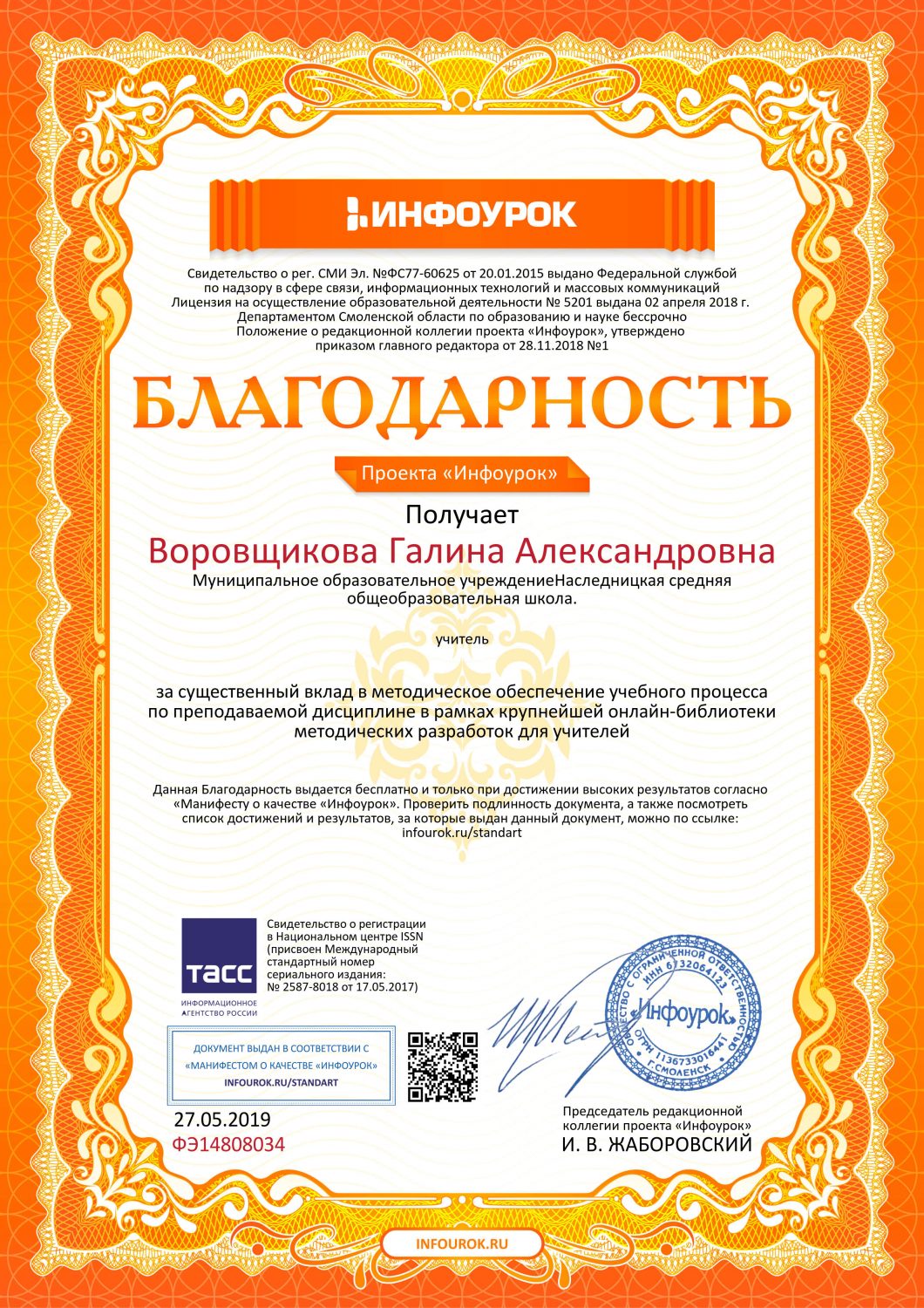 Blagodarnost-proekta-infourok.ru-FE14808034 0Автор публикации не в сети 6 лет ГАЛИНА АЛЕКСАНДРОВНА ВОРОВЩИКОВА 40 Комментарии: 0Публикации: 22Регистрация: 26-05-2019